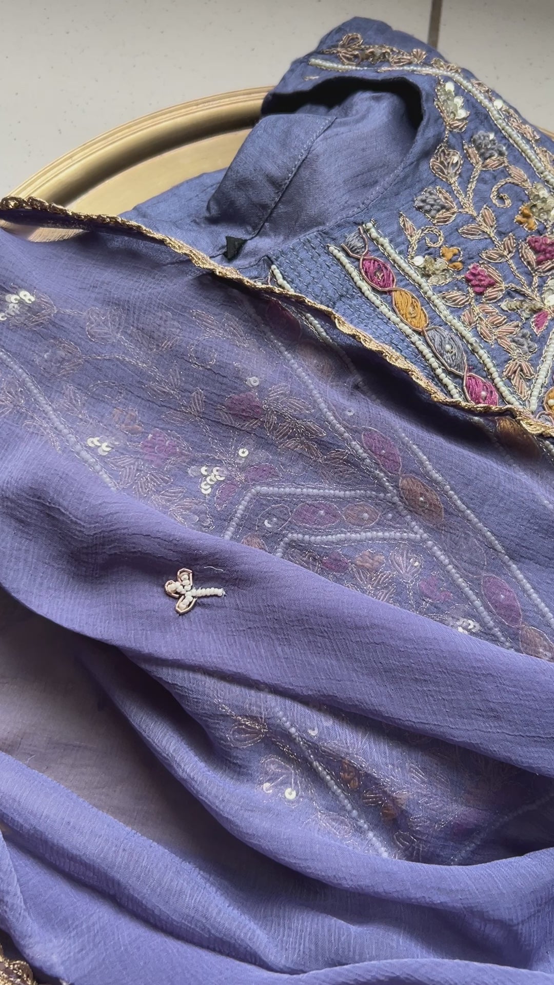 Powder blue pure dola silk suit that strikes the perfect balance for both day and night events embodies elegance and versatility.